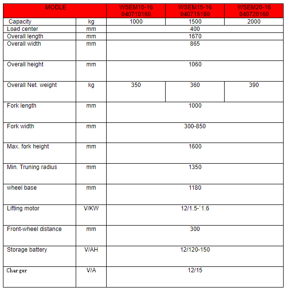 WJSEM10-16 Semi Electrical Stacker