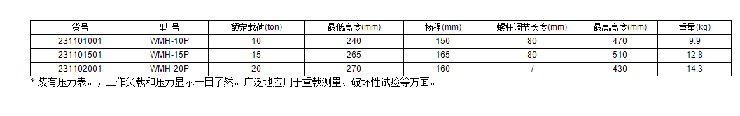帶壓力表油壓千斤頂WMH-20P