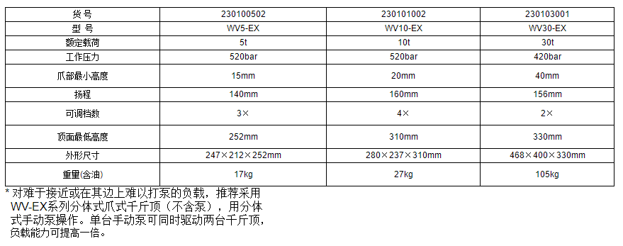 液壓爪式千斤頂WV-EX系列