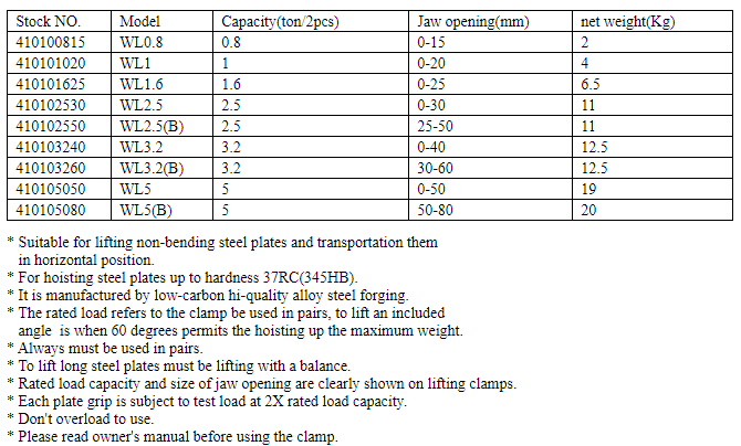 WL Horizontal Lifting Clamp